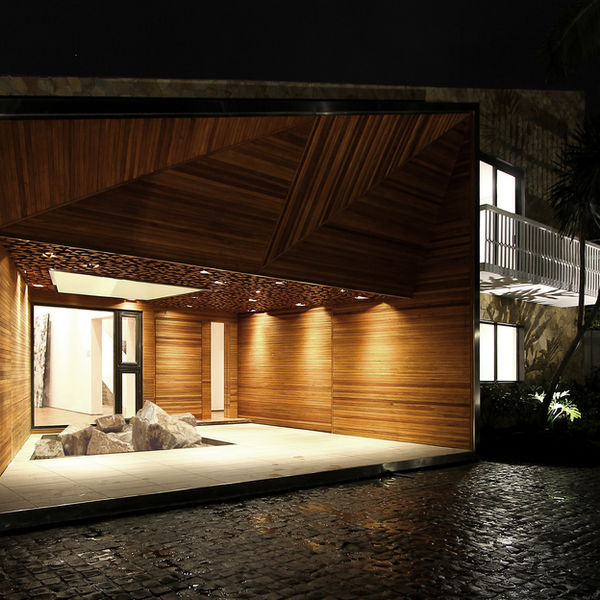 The strategy was to breakdown and identify the essence of the existing architecture before remodeling it while keeping in mind the modern lifestyle of the 21st century. An intervention was done by analyzing important characters of the old structure and complementing them with contemporary details rather than scrapping the old design and starting anew. Lines of the existing elevations were studied to produce a singular composition. A funneling effect was created to suggest the importance of the porch leading to the main door. This was further enhanced by how the wood planks were laid out.